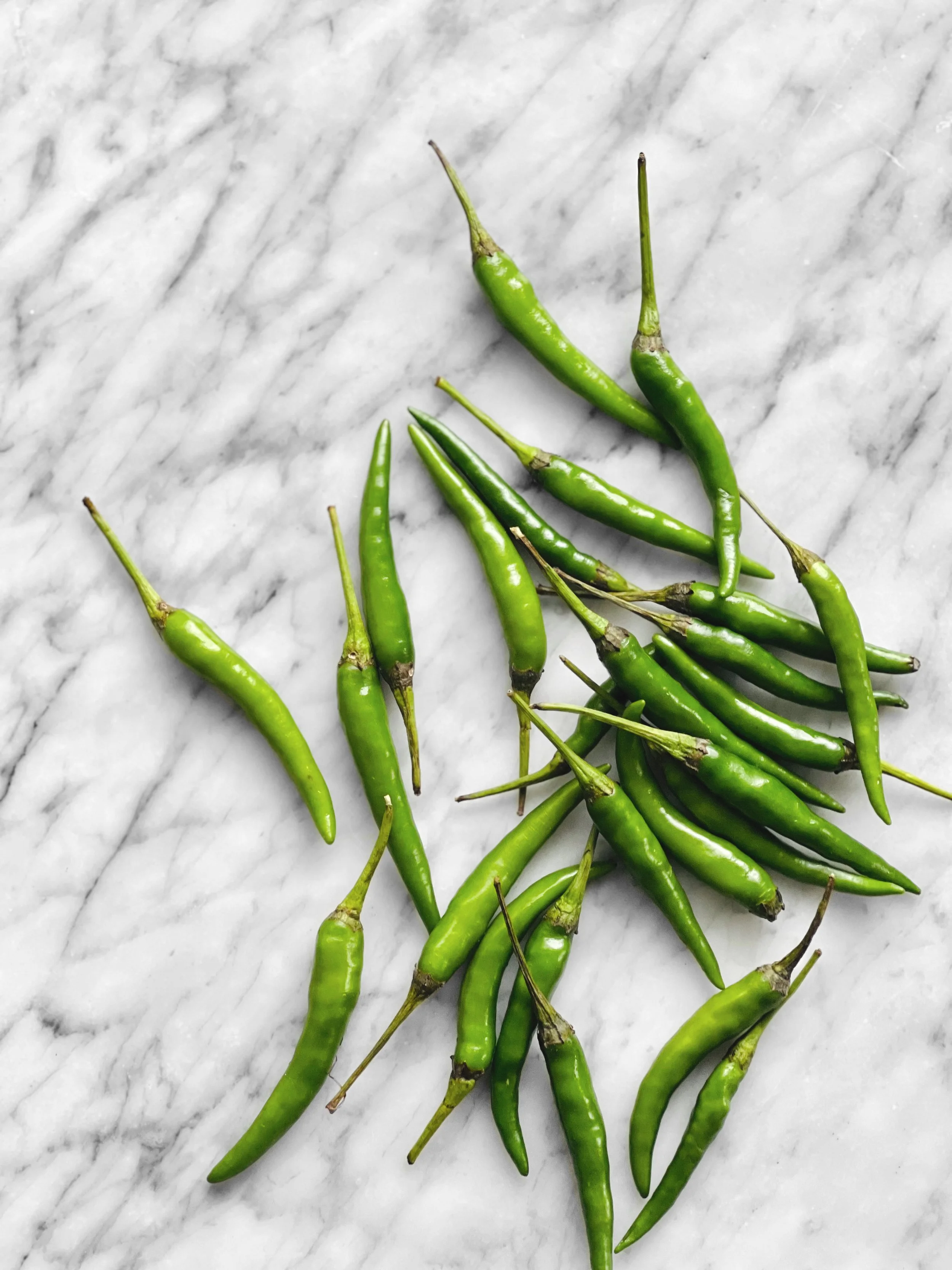 Chilis thaï & piment oiseau : Le piment oiseau et le piment chili thaï sont souvent confondus, car ils se ressemblent beaucoup : petits, fins, rouges ou verts, et extrêmement piquants. Pourtant, ils ont des origines et des usages légèrement différents. Le piment oiseau, est utilisé dans de nombreuses cuisines, notamment en Afrique, dans les Caraïbes et à La Réunion. Il est réputé pour sa chaleur intense, allant de 50 000 à 100 000 SHU. Le chili thaï, quant à lui, est un terme générique qui englobe plusieurs variétés de piments cultivés en Thaïlande. Le plus courant est aussi appelé piment oiseau, ce qui signifie qu’il s’agit en réalité du même type de piment, mais cultivé localement et intégré dans les recettes thaïes comme les currys, les salades épicées ou les sautés. Donc, chili thaï ou piments oiseaux, tous deux sont de redoutables alliés pour les amateurs de cuisine épicée, avec une puissance qui exige respect… - IDÉES RECETTES ICI