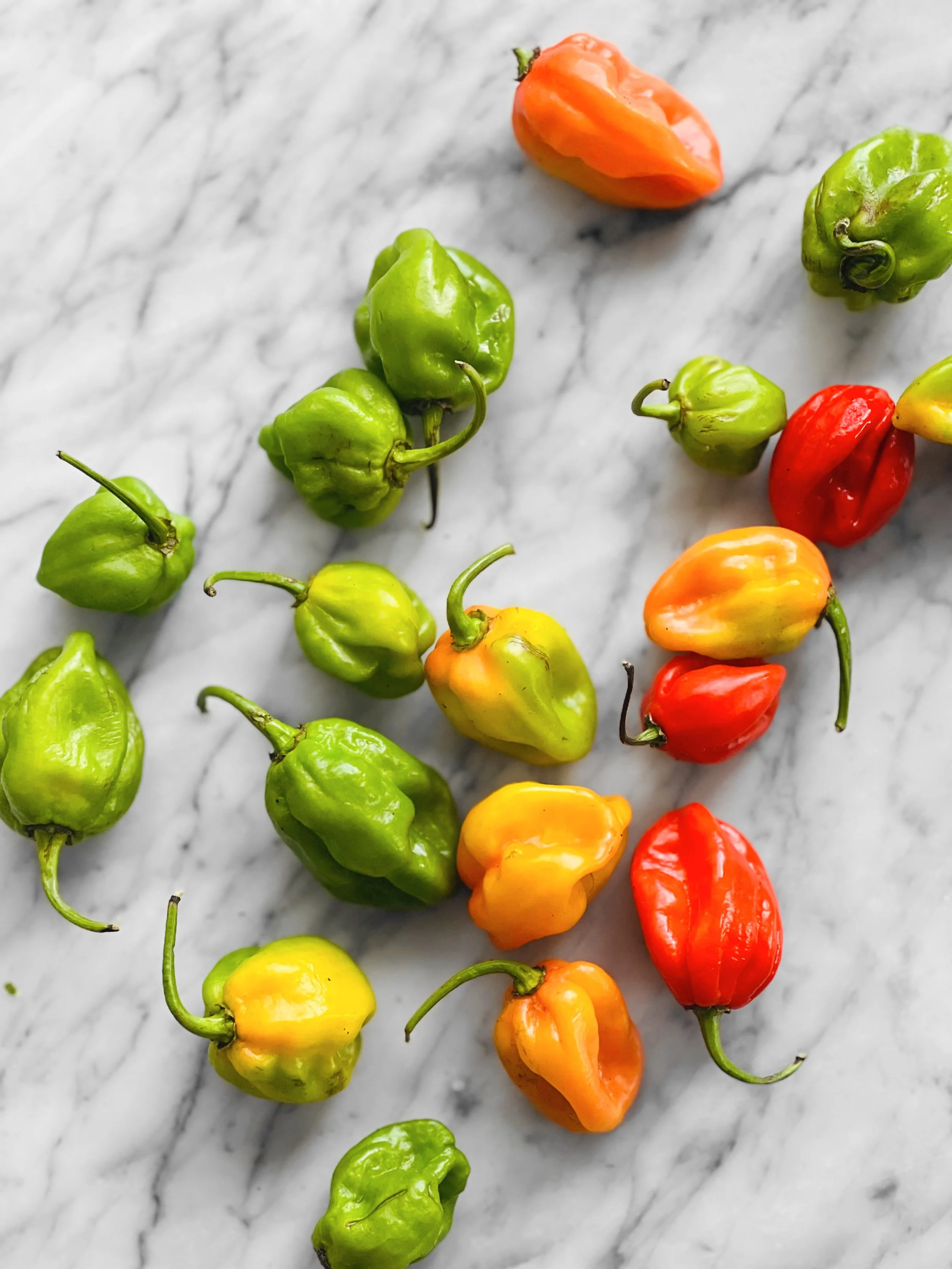 Habanero & Scotch Bonnet : Les deux sont souvent confondu, mais c’est en bouche qu’on les différencie le mieux. Les piments habanero et Scotch Bonnet sont deux véritables légendes du monde des piments forts. Cousins botaniques issus de l’espèce Capsicum chinense, ils partagent une intensité redoutable. Le habanero, originaire du Mexique, est souvent plus répandu dans les supermarchés. Il présente une forme de lanterne, une peau lisse et brillante, et une couleur qui varie du vert au rouge, en passant par l’orange. Sa chaleur peut atteindre jusqu’à 445 000 SHU, ce qui en fait l’un des piments les plus puissants disponibles dans le commerce. Il est très utilisé dans les sauces piquantes, notamment celles à base de mangue ou d’agrumes, où sa force est équilibrée par la douceur des fruits. Le Scotch Bonnet, quant à lui, est emblématique de la cuisine caribéenne, notamment dans les sauces jerk jamaïcaines. Il est légèrement plus doux que le habanero, avec une chaleur allant jusqu’à 260 000 SHU, mais il se distingue par une saveur plus sucrée et tropicale, très prisée dans les plats antillais. Sa forme rappelle celle d’un petit bonnet, d’où son nom, et il est souvent plus difficile à trouver en dehors des marchés spécialisés. - IDÉES RECETTES ICI