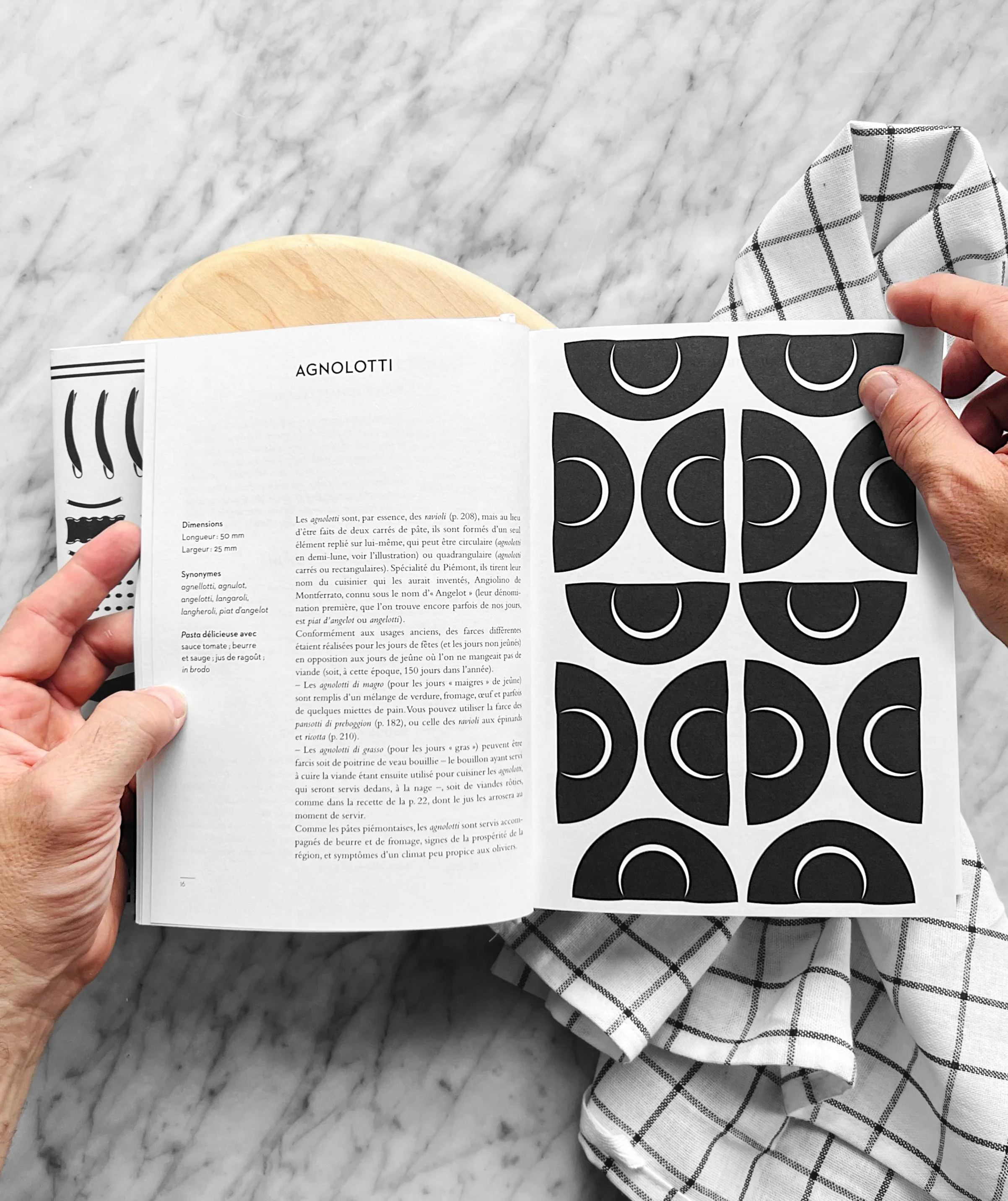 La recette est une adaptation d’une recette tirée d’un livre incontournable sur les pâtes, Géométrie de la pasta, un ajout récent à ma bibliothèque. Le livre signé Caz Hildebrand (aux illustrations) et Jacob Kenedy (chef et auteur), publié en français chez Marabout, est un magnifique ouvrage minimaliste qui survole toutes les formes de pâtes imaginables et propose les sauces ou les utilisations parfaites pour les apprécier le mieux. Une nouvelle version améliorée est parue en 2022 et est disponible dans toutes les librairies.