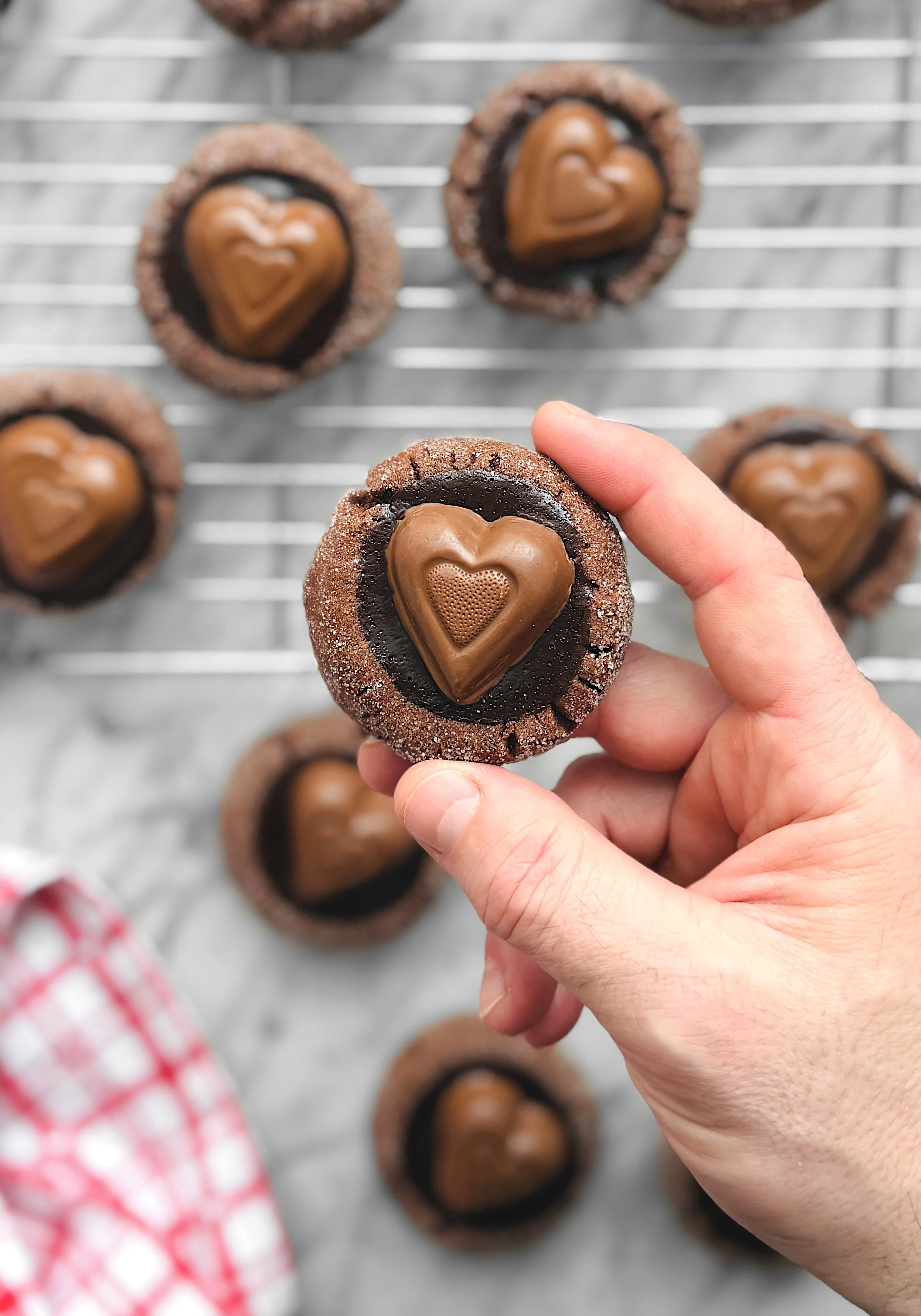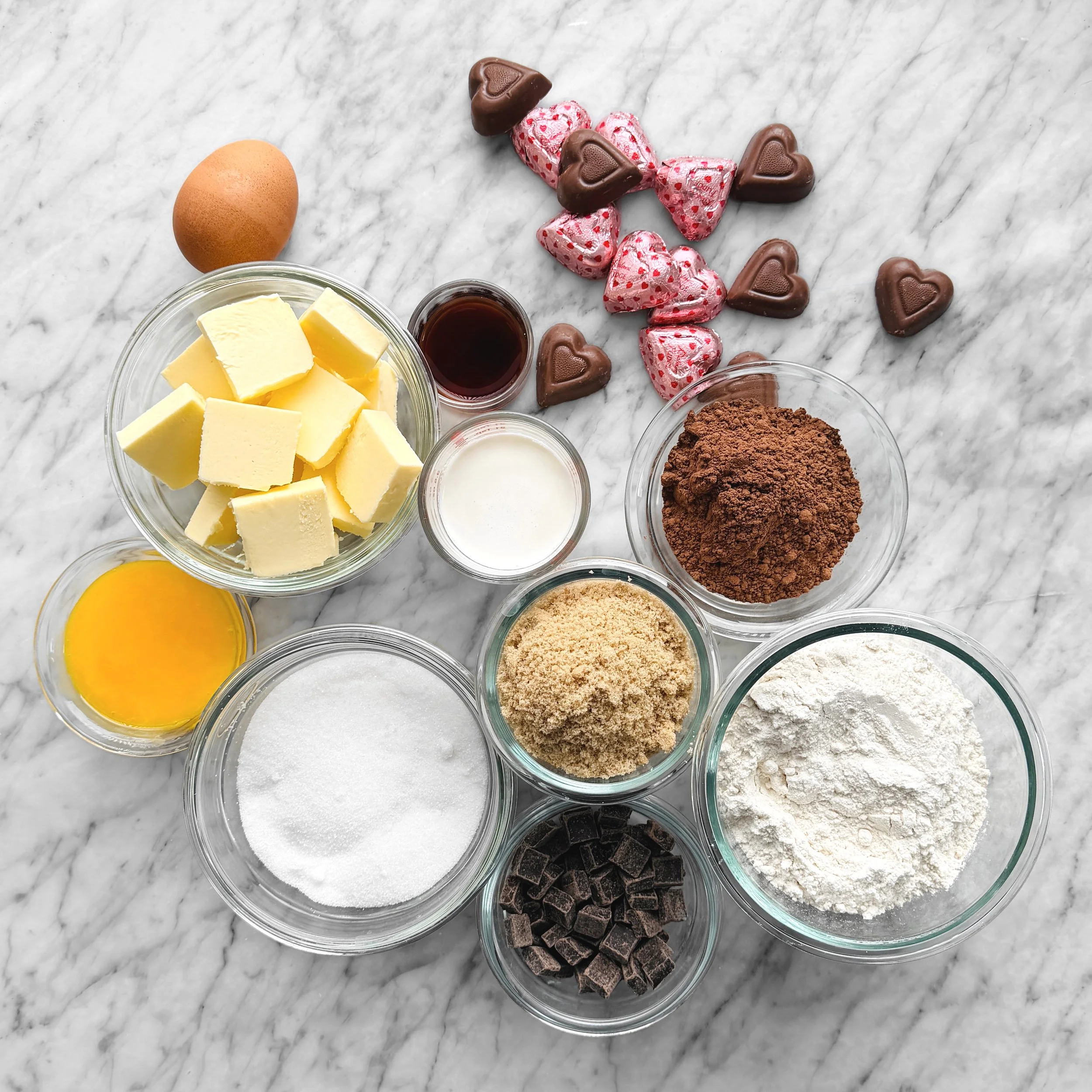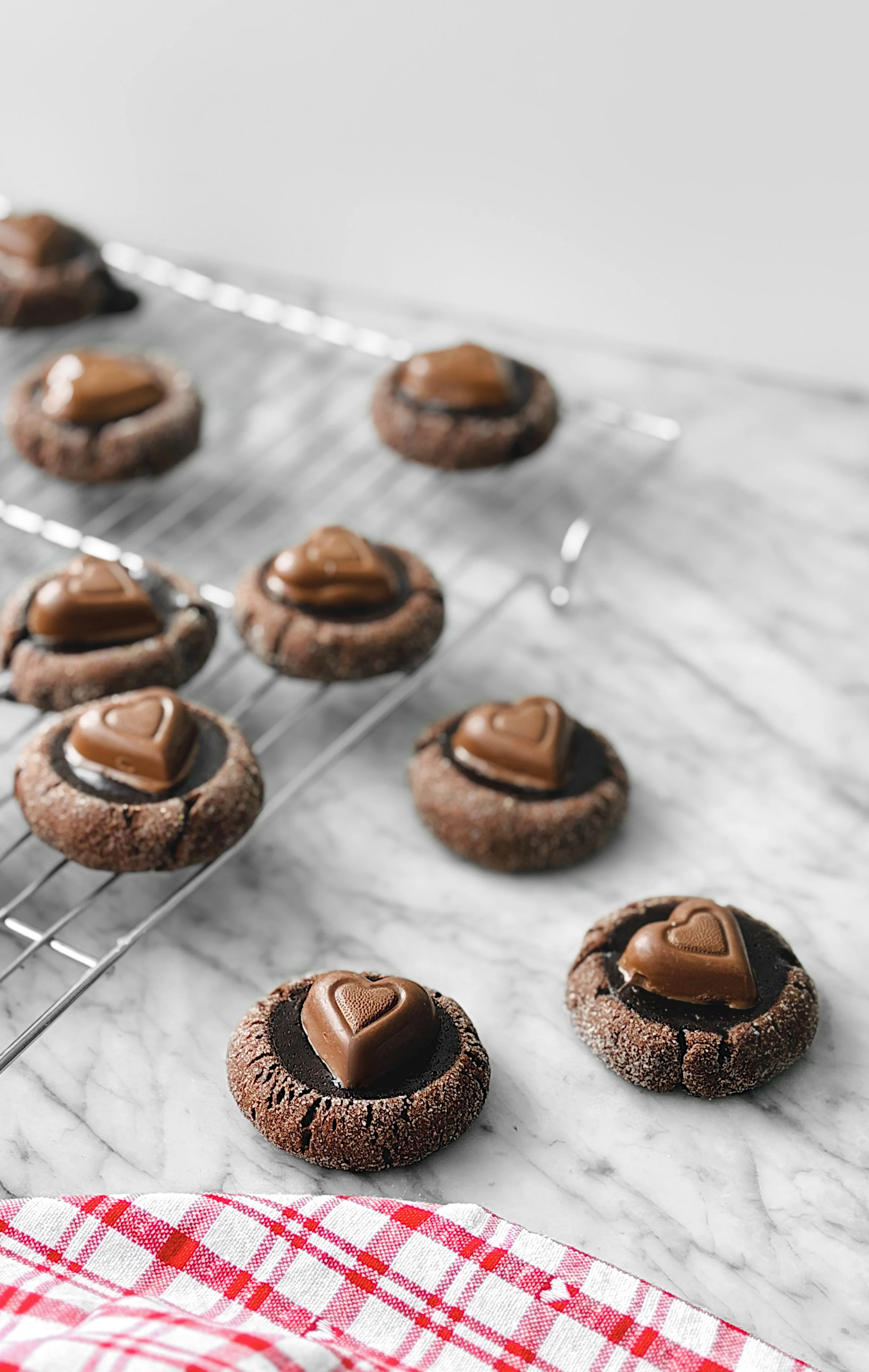 Ces magnifiques biscuits au chocolat généreusement garnis d’une ganache coulante et d’un chocolat au lait est une véritable gâterie, décadente à souhait. Pour ces biscuits, on ne cherche pas la discrétion. On veut quelque chose d’audacieusement tendre, d’un peu théâtral et de parfaitement assumé pour la Saint‑Valentin.