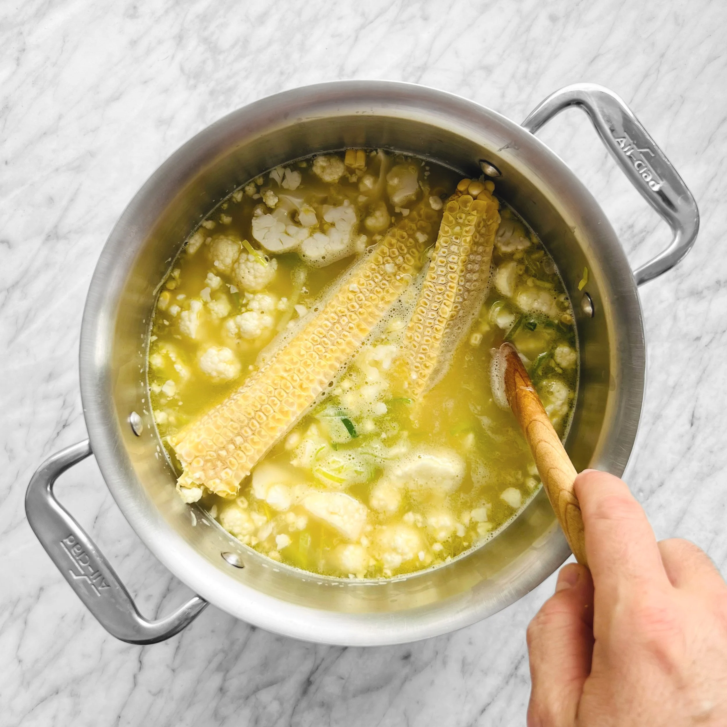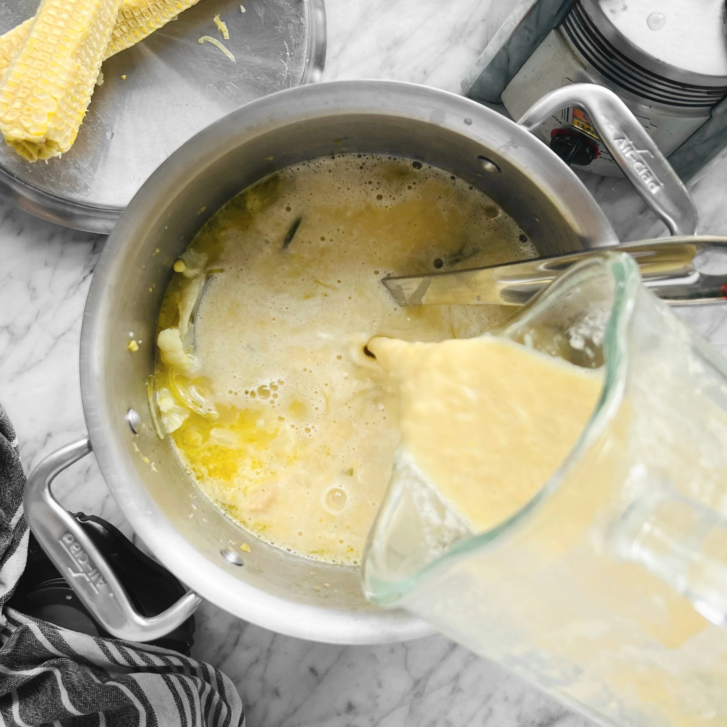 Si vous travaillez avec des maïs frais, récupérez les rafles et faites-les mijoter dans la soupe pour maximiser le goût du maïs. Retirez et jetez une fois la cuisson terminée.