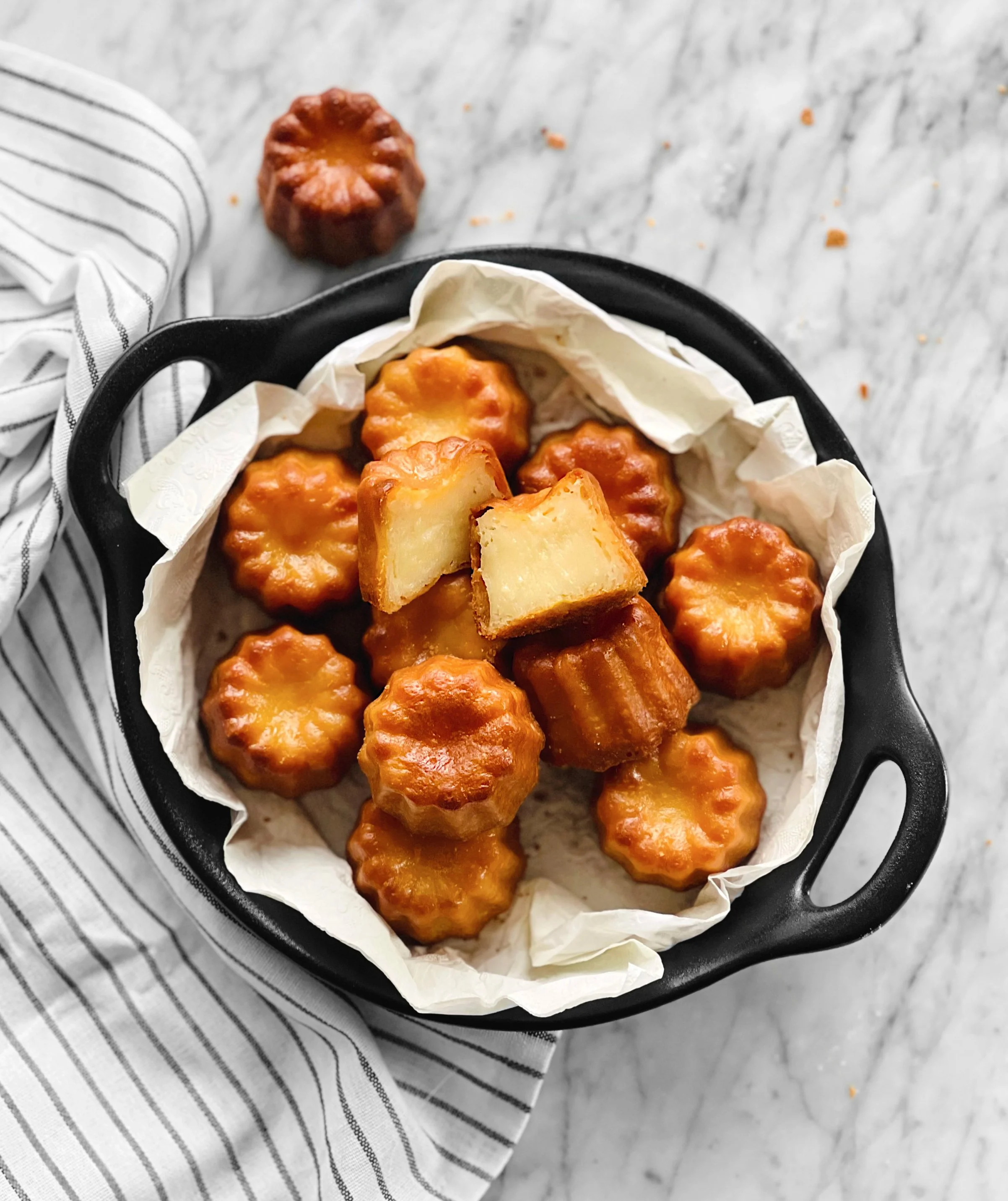 Préchauffer le four à 375°F. Beurrer légèrement des petits moules à cannelés ou autres.