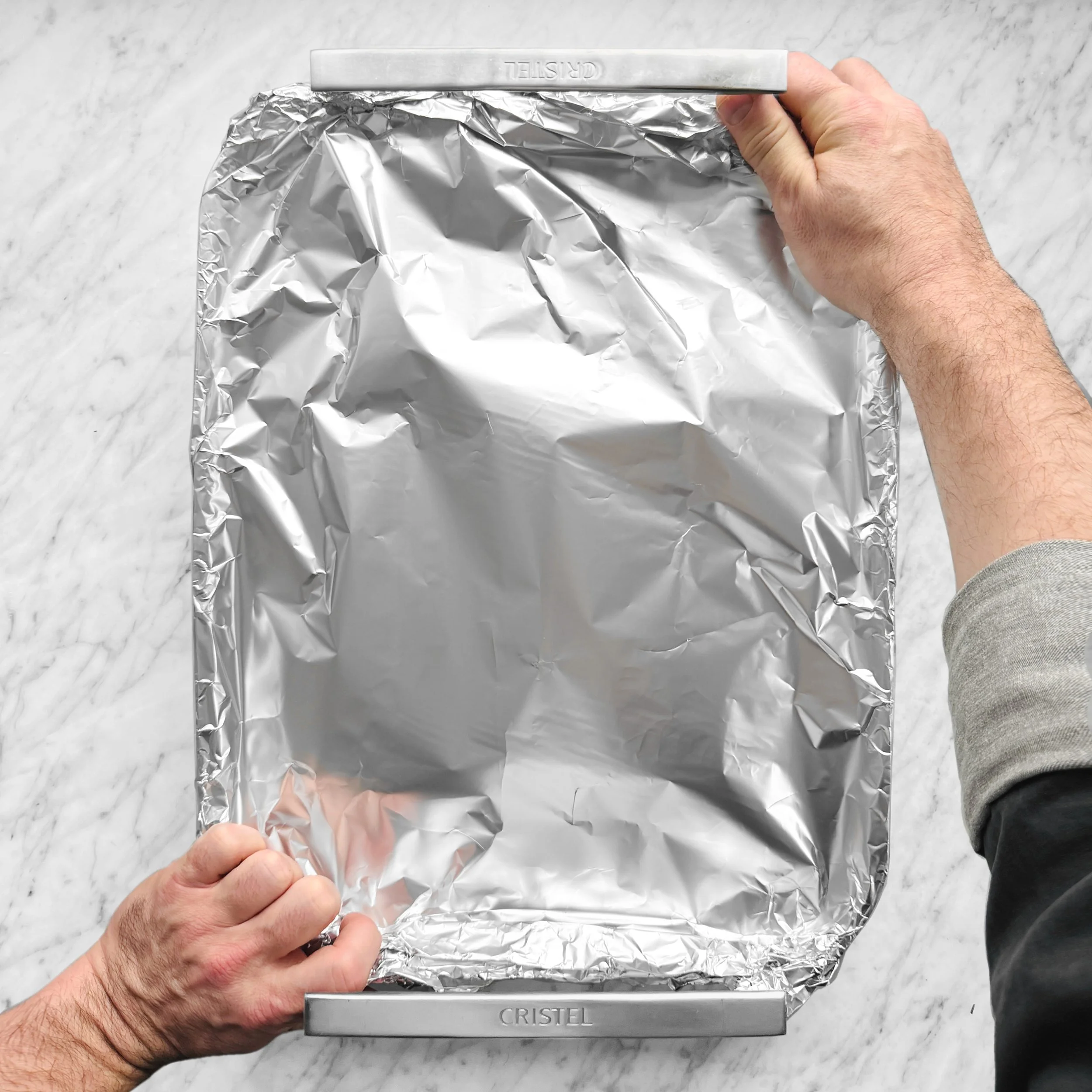 Retirer la rôtissoire du four et découvrir le porc. Avec le même papier d’aluminium ou avec un autre morceau, former une boule et placer sous la poitrine de porc pour la surélever. Réduire la chaleur du four à 400°F. Cuire à découvert 1h à 1h15. Jusqu’à ce que la peau commence à devenir croustillante.