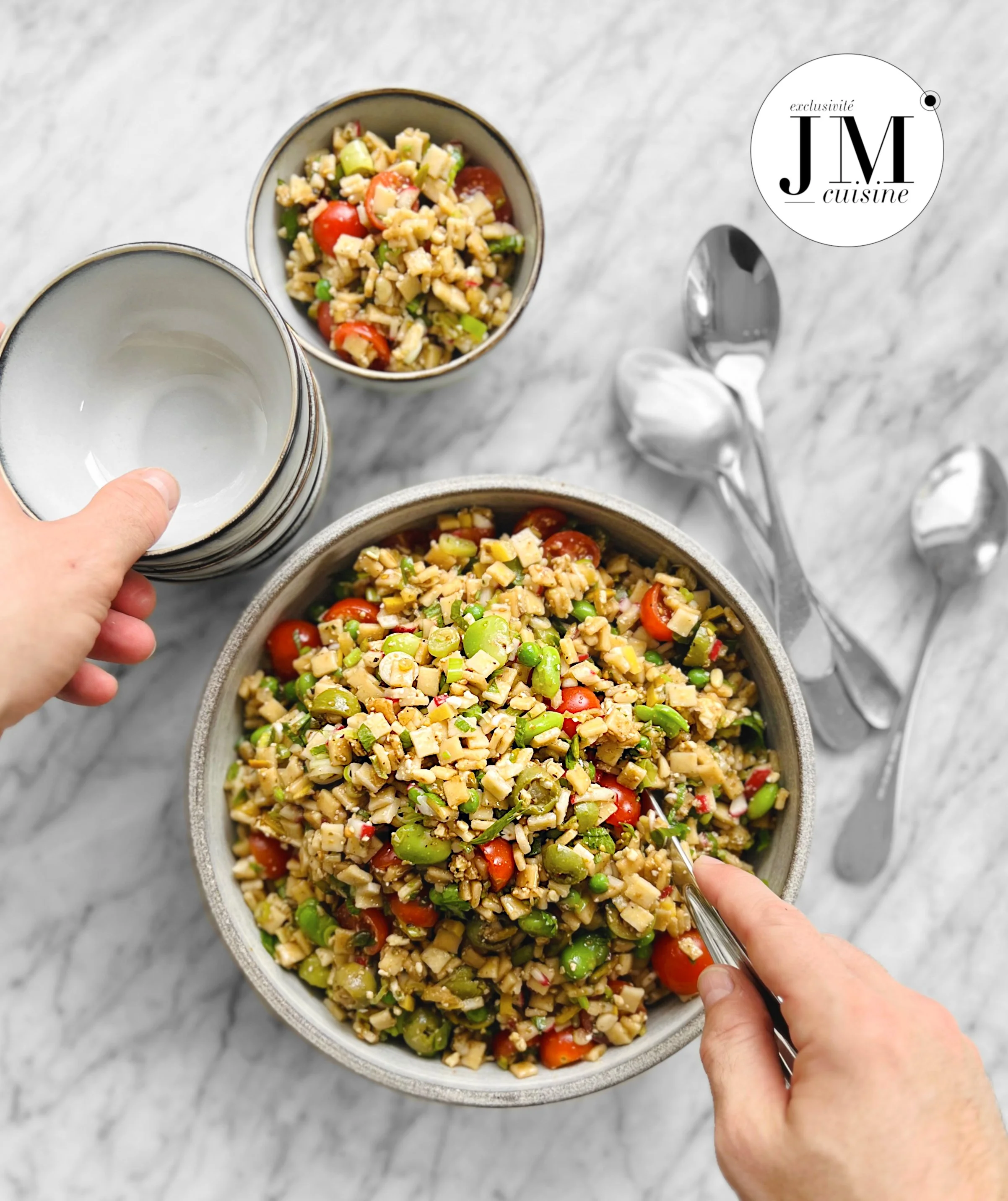 Quelle salade pratique que la salade d’orzo! Elle se conserve longtemps et elle est surtout préparée pour nourrir une armée ou pour se faire des lunchs pour la semaine - mine de rien c’est la rentrée bientôt, gardez cette idée pas loin pour vos boîtes à lunch.