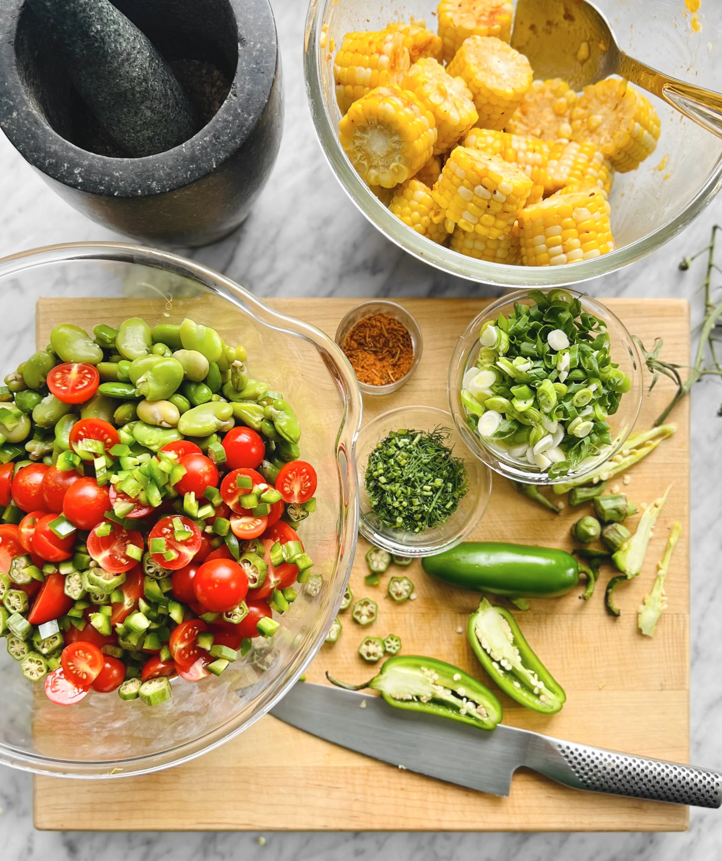 Salade cajun épicée façon Succotash à la Piko Peppers