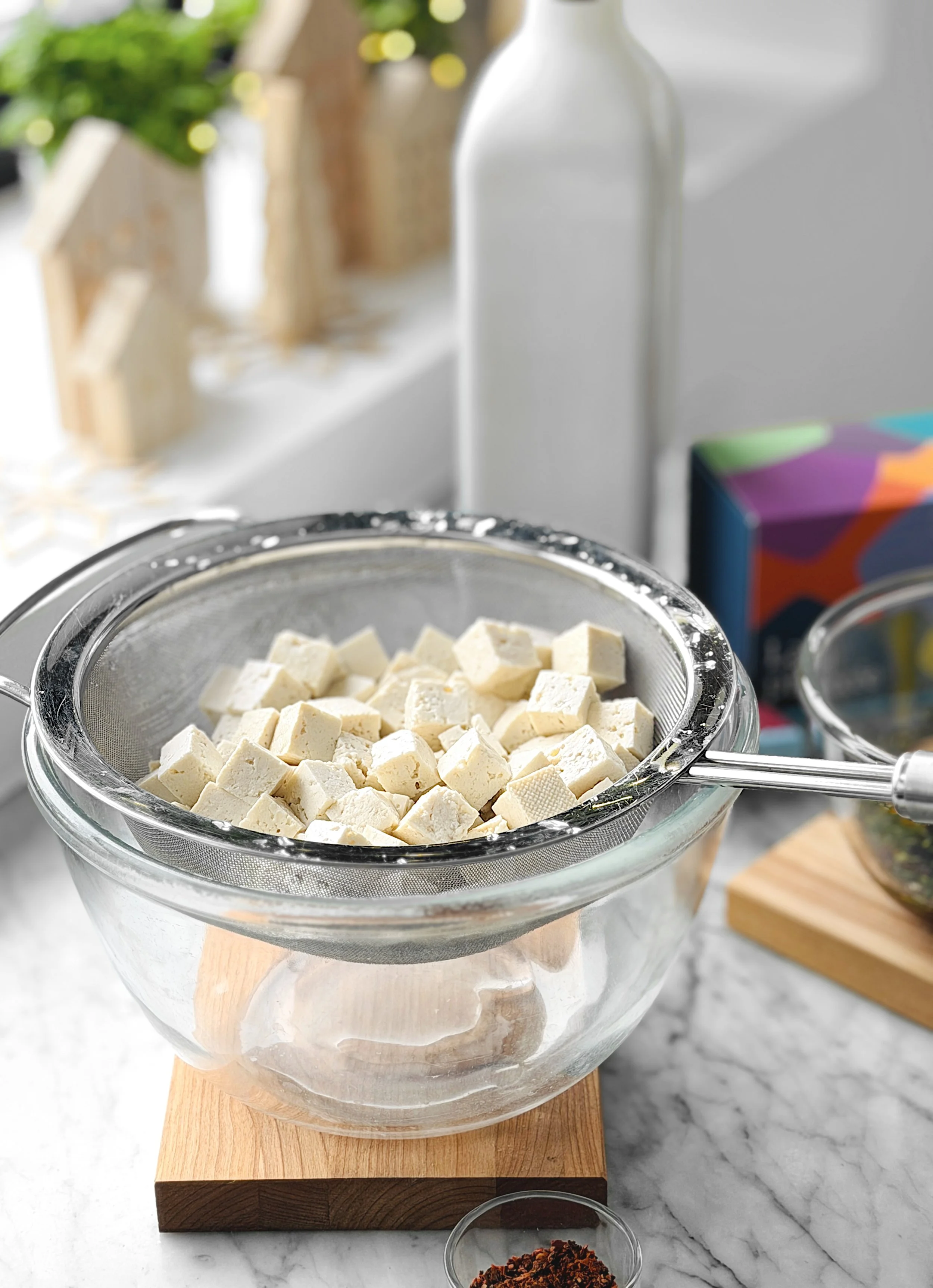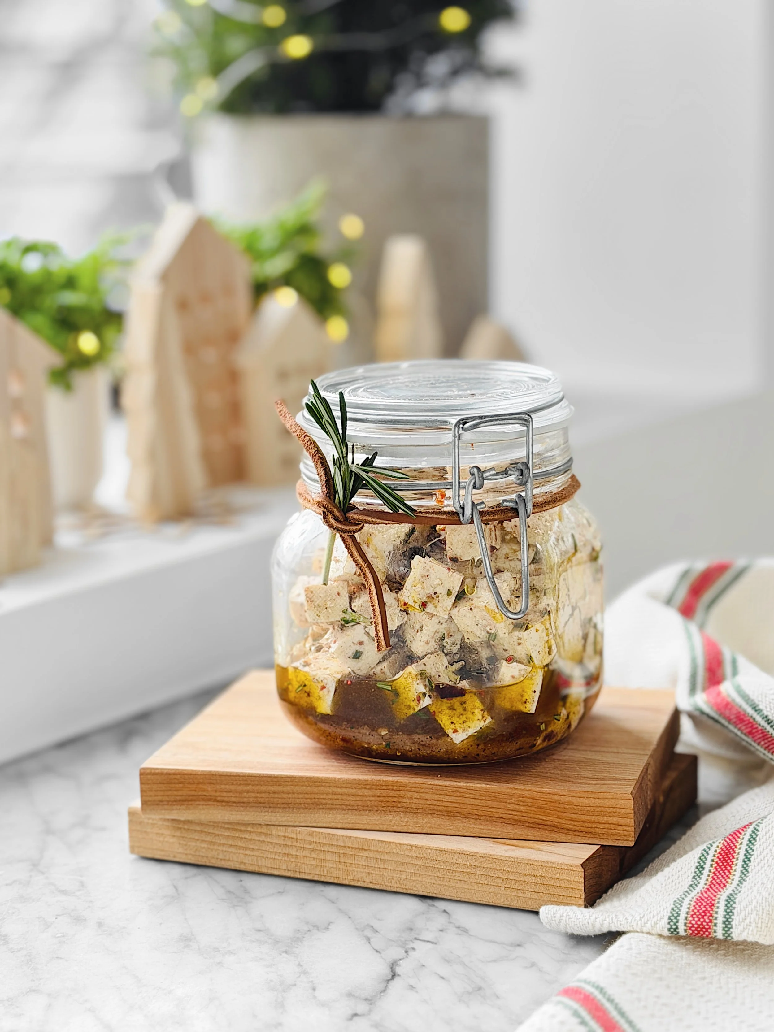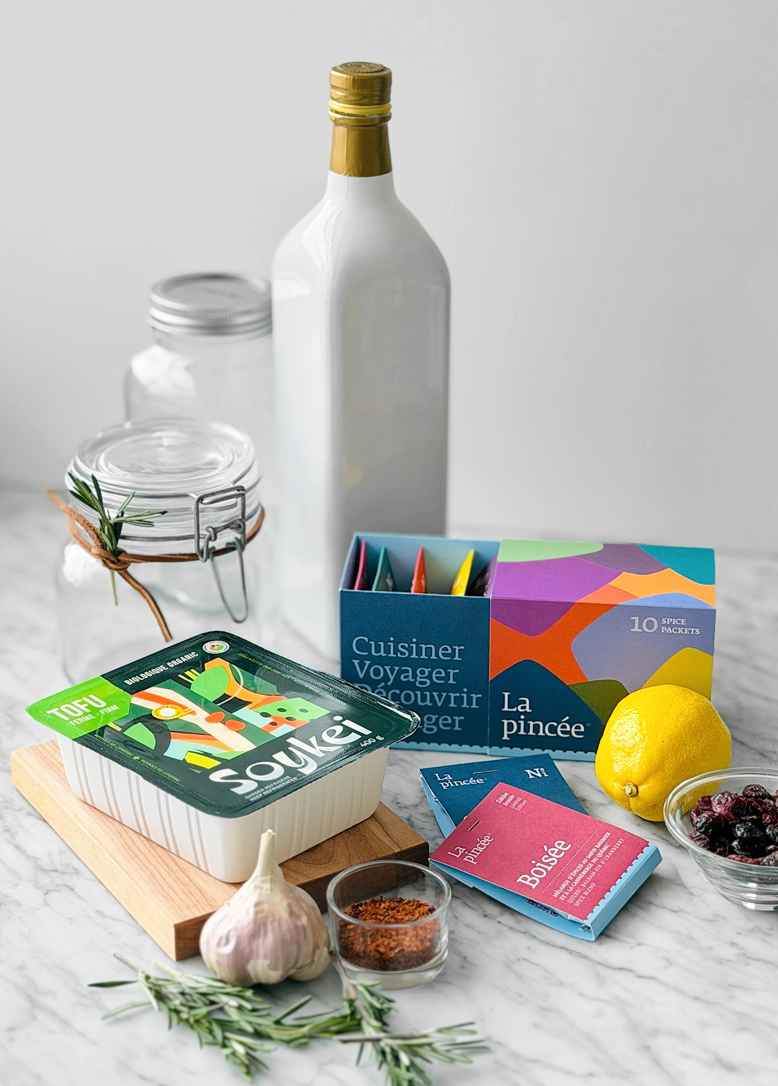 apéro - tofu - épices - citron - romarin - canneberges - saumure - marinade - végétarien - vegan - Noël - temps des fêtes - exclusivité - collaboration - Soykei - La pincée
